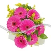 Гербера – удивительный цветок. Он способен отводить от грустных мыслей, настраивать на позитивный лад, вселять надежду на прекрасное будущее. Букеты с герберами приносят счастье и удачу в начинаниях, это отличный подарок коллеге, подруге, любимой девушке, которая находится в состоянии упадка жизненных сил. Милыми элементами декора в данной композиции служат веточки солидаго.
